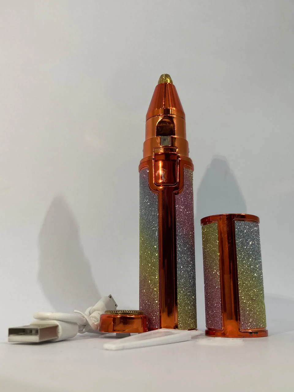 • Elegant Design: Stunning rainbow glitter and rose gold finish – stylish and functional.